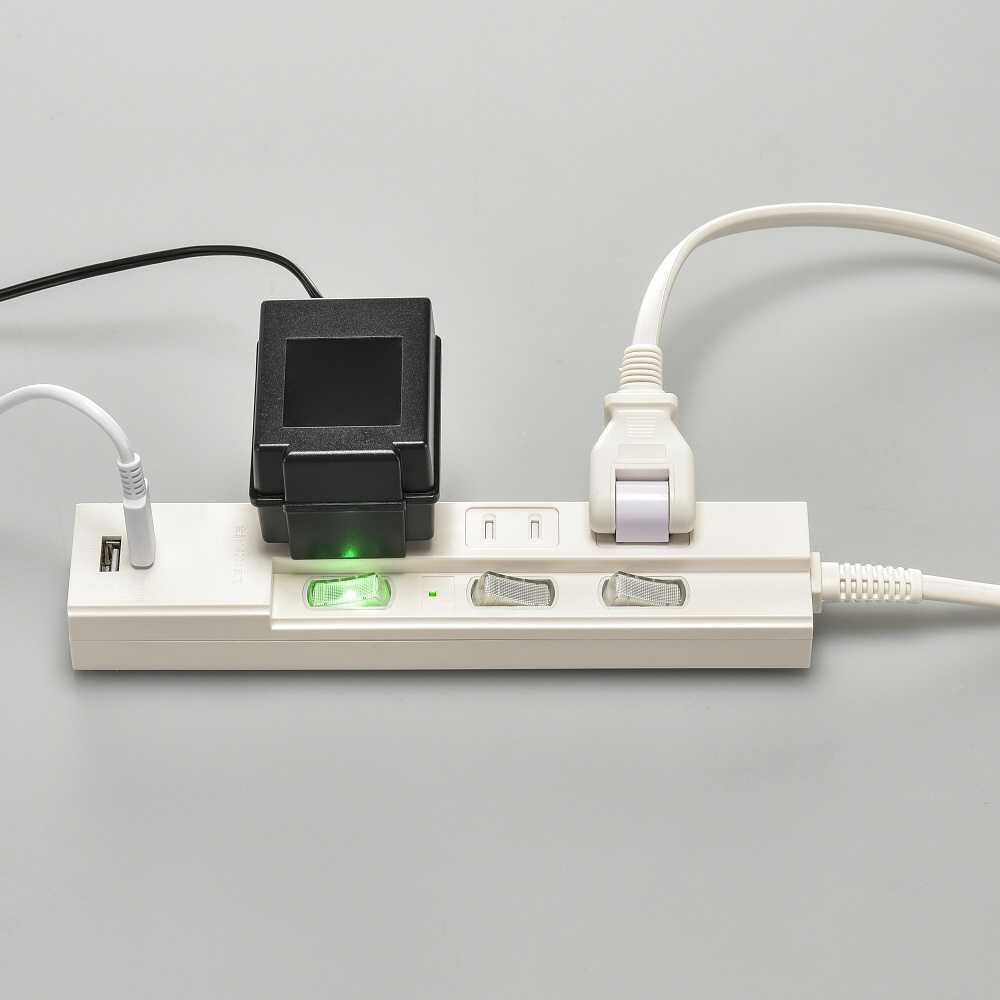 スマホ2台を同時充電できる、USBポート付節電タップ
