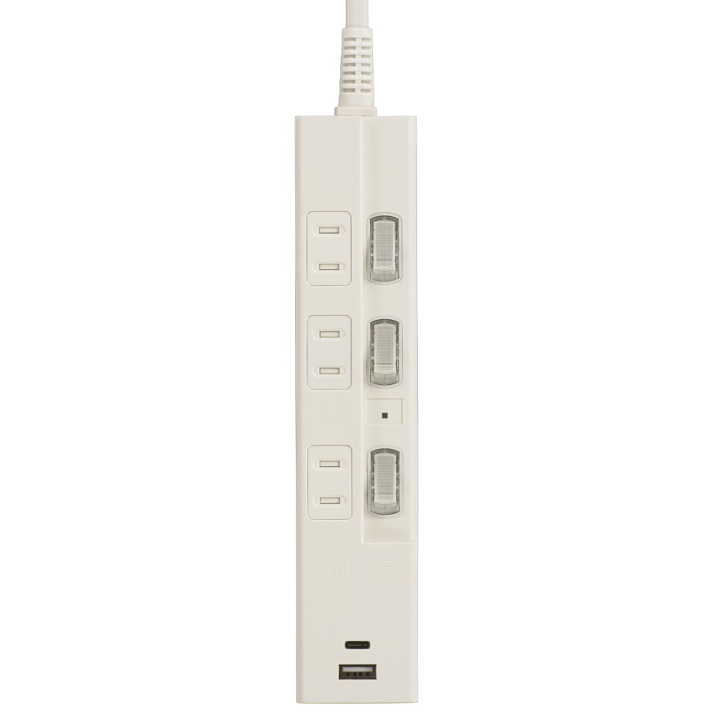 USB付き節電タップ Type-Cポート付 白 OBB-TPK321AC-W [2.0m /3個口 /スイッチ付き(個別) /2ポート]