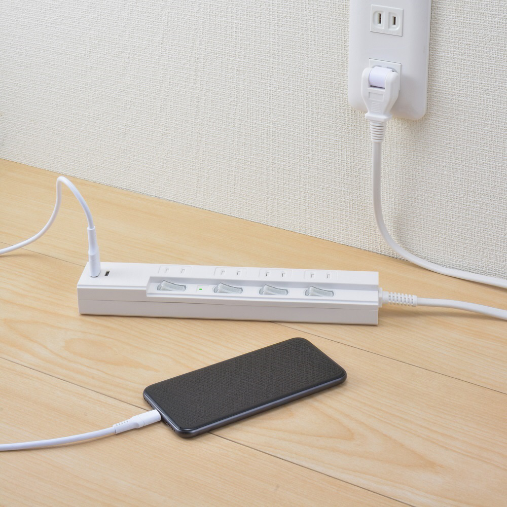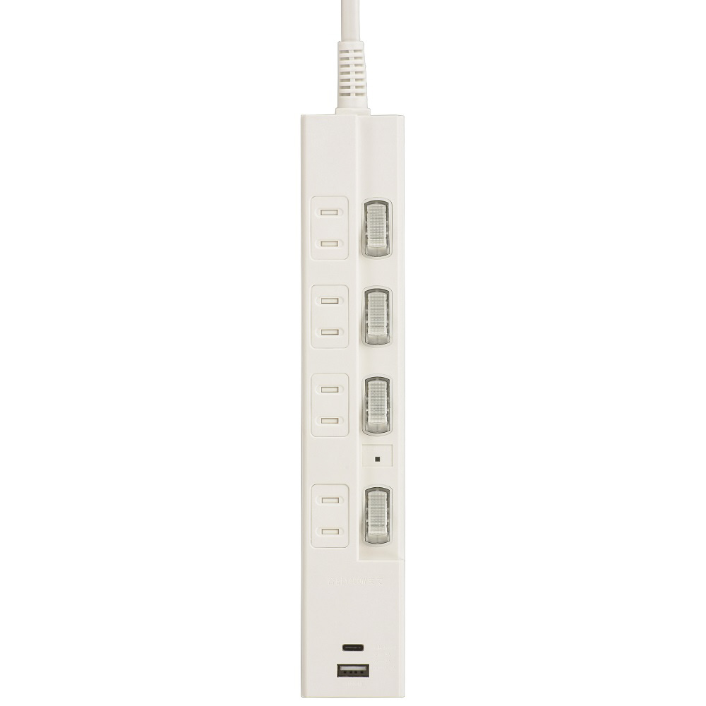 USB付き節電タップ Type-Cポート付 白 OBB-TPK421AC-W [2.0m /4個口 /スイッチ付き(個別) /2ポート]