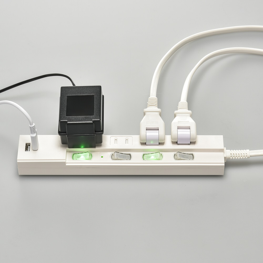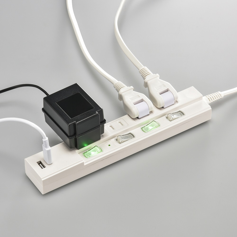 スマホ2台を同時充電できる、USBポート付節電タップ