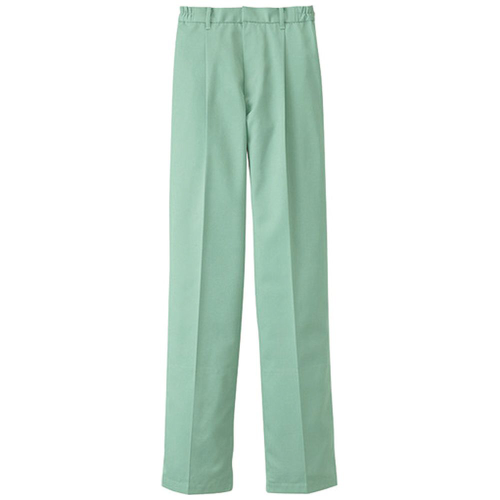 異物混入対策仕様のスタンダードの常温作業場向けストレートパンツです。ウエスト脇ゴム、フロントコイルファスナー、インナー裾口ゴム入りです。右前ウエスト裏マジックテープ式キーポケット付きです。縫い代は巻き伏せ縫い、ホワイト、サックス、グリーンの3色展開です。