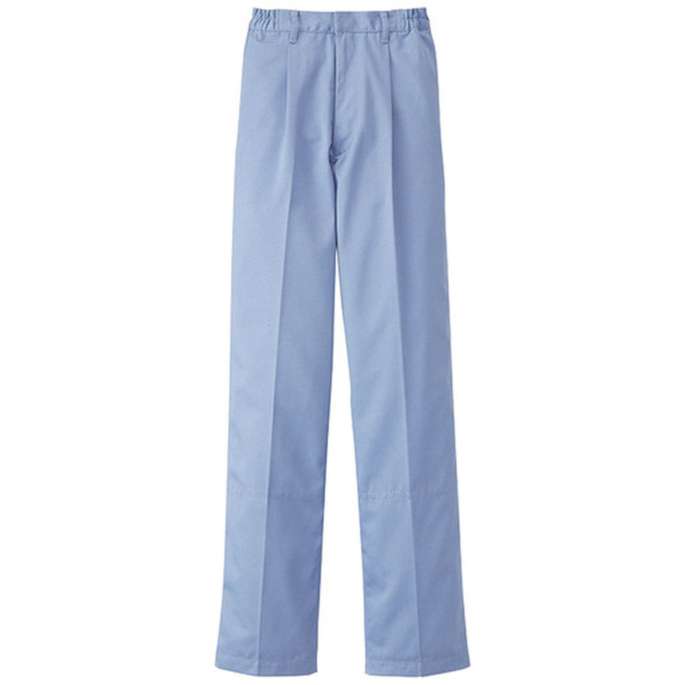 異物混入対策仕様のスタンダードの常温作業場向けストレートパンツです。ウエストは脇ゴム、フロントコイルファスナー、インナー裾口はゴム入りです。縫い代は巻き伏せ縫い、右前ウエスト裏マジックテープ式キーポケット付きです。