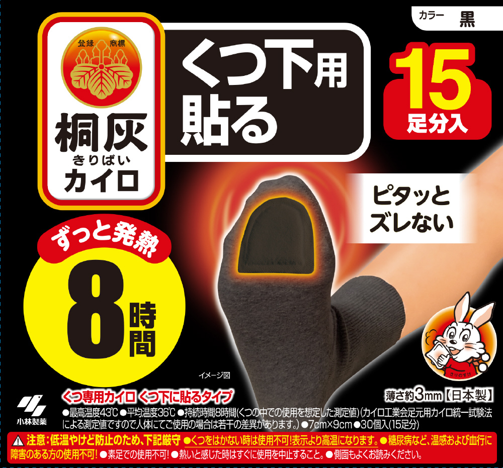 | 商品名 | 桐灰カイロ くつ下用 貼る つま先 15足分入 黒 |