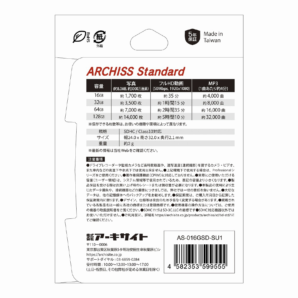 ARCHISS Standard SDHC 16GB Class10 UHS-1 (U1) AS-016GSD-SU1 [Class10 /16GB]