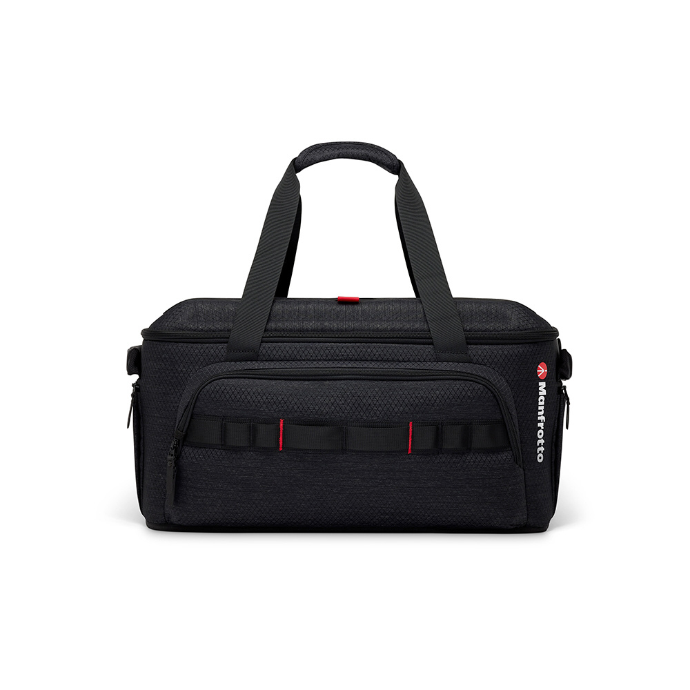 アクセサリーを追加して拡張したビデオカメラシステムをそのまま収納することを想定してデザインされたカメラバッグ