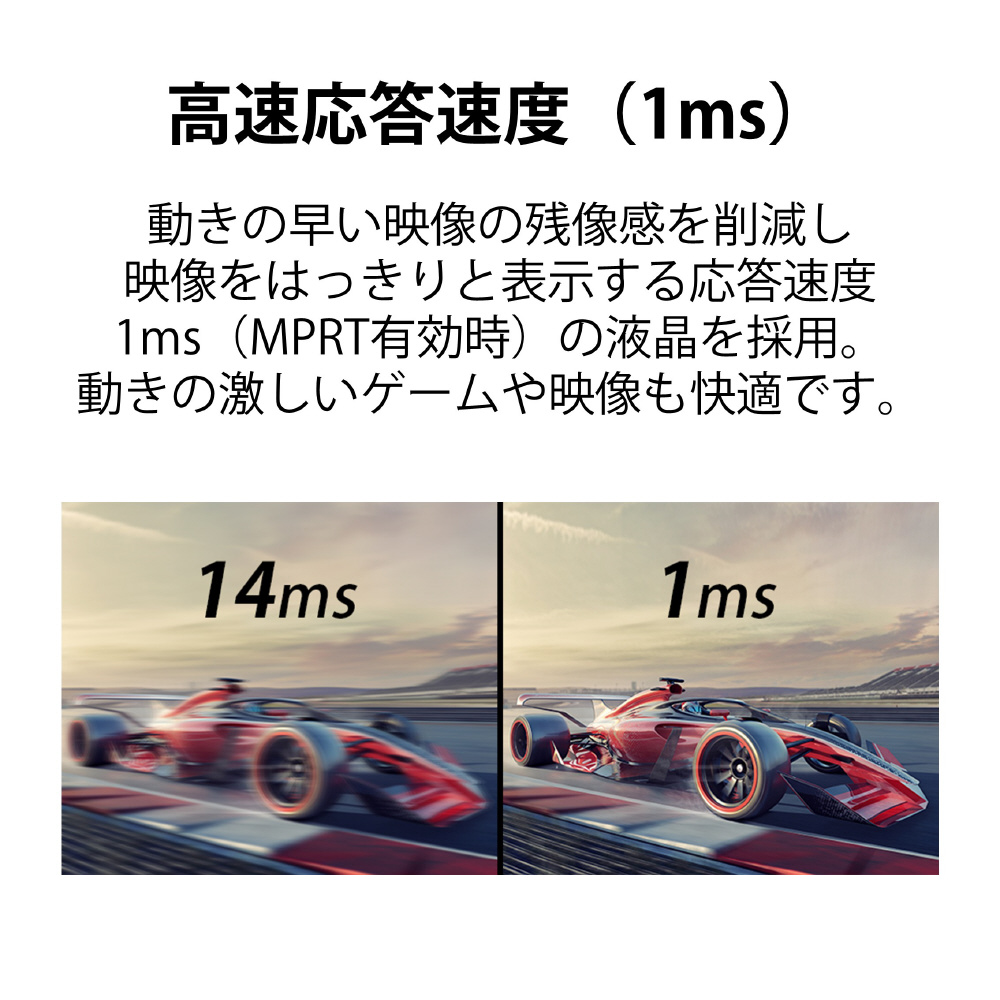 応答速度 標準:6ms、オーバードライブ時:4ms/MPRT:1ms