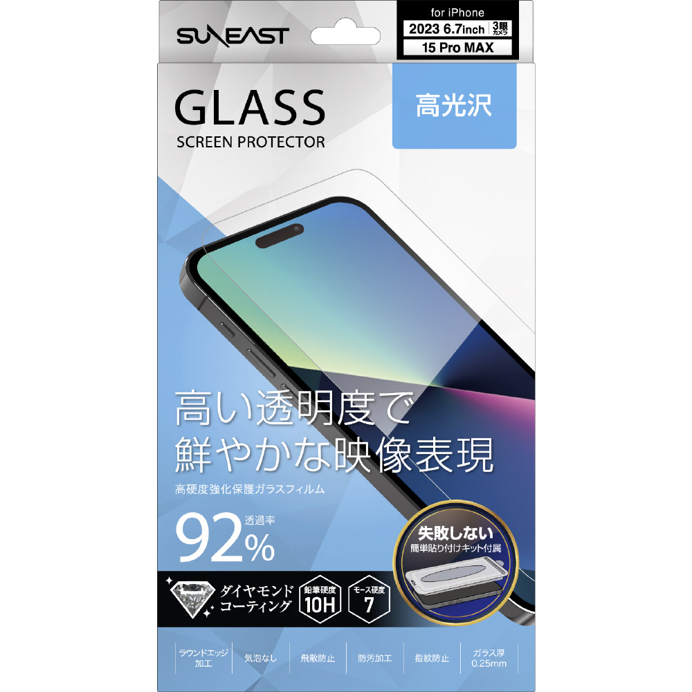 | 商品名 | iPhone15ProMax専用ガラスフィルム 高光沢 ダイヤモンドコーティング 気泡レス 指紋防止 取り付けジグ付 |