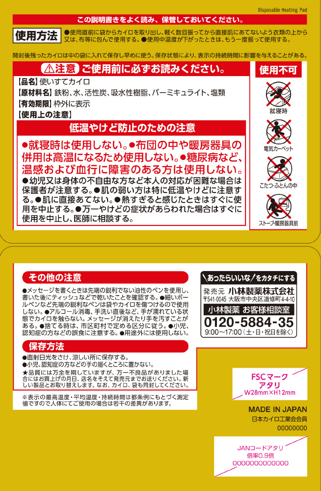 中身たっぷりで長時間温かい カイロ本体と個包装にメッセージや好きな絵などを書ける!手触りしなやかで丈夫です。