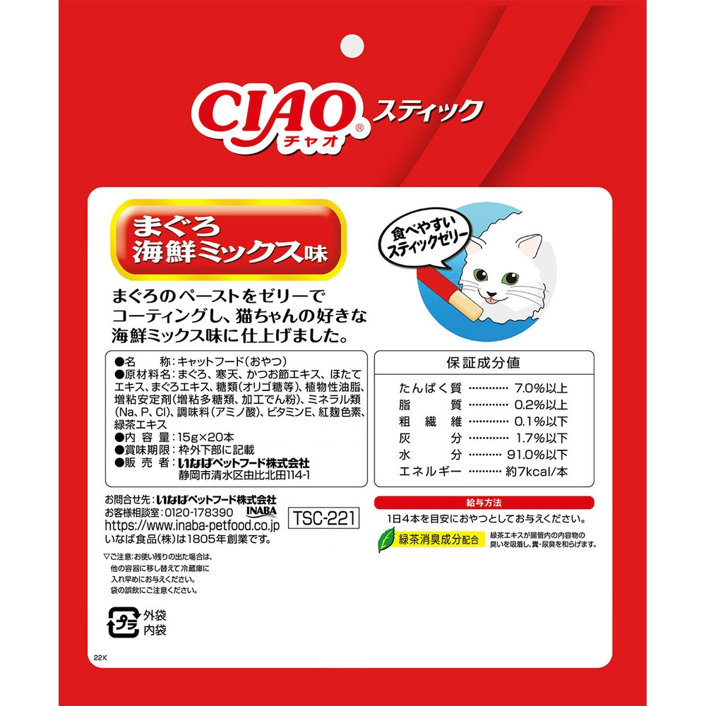| 商品名 | CIAO(チャオ)スティック まぐろ 海鮮ミックス味 15g×20本入 |