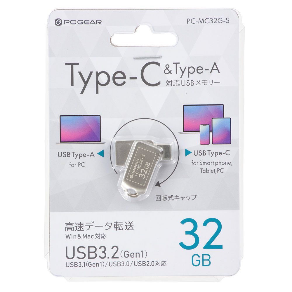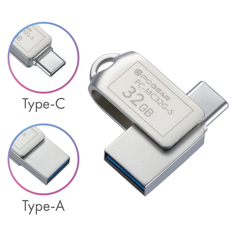USBメモリ PCGEAR(Android//Mac/Windows) PC-MC32G-S [32GB /USB TypeA+USB TypeC /USB3.2 /回転式]