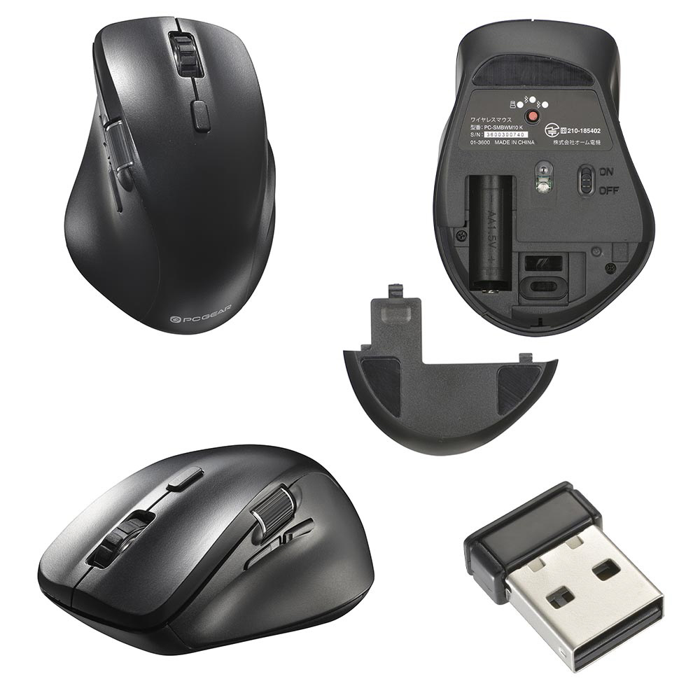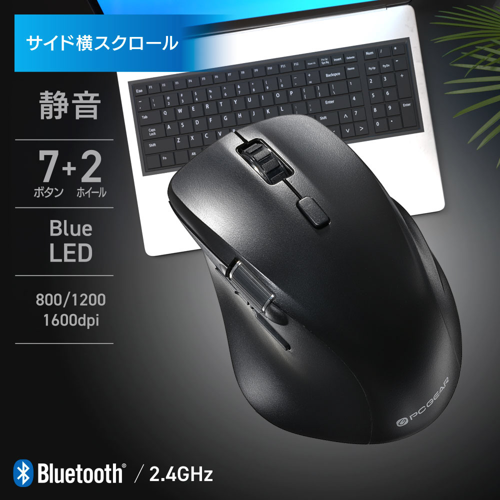 マウス PCGEAR(Chrome/Android/iPadOS/iOS/Mac/Windows11対応) ブラック PC-SMBWM10K [BlueLED /無線(ワイヤレス) /7ボタン /Bluetooth・USB]