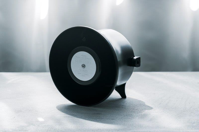 NMP-103は、業務用のスピーカーユニット「振動版」を搭載した、金属製のホーンスピーカーです。