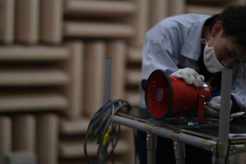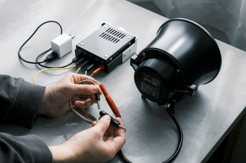 タンカー船やコンテナ船等で実際に使われている船舶用ホーンスピーカーをベースに開発。