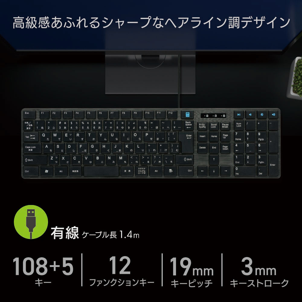 商品名 キーボード PCGEAR(Mac/Windows11対応) ブラック PC-SKC41K [有線 /USB]