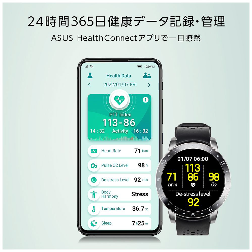 ※ASUS VivoWatch 5は医療機器ではなく、病状の診断を目的とするものではありません。測定結果はフィットネス・ウェルネス目的の参考値です。