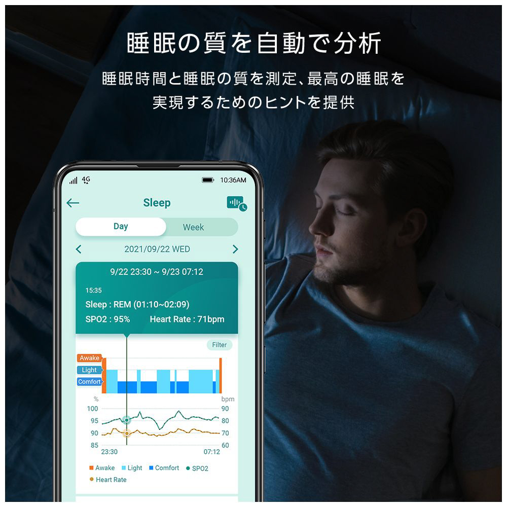 睡眠時間と睡眠の質を測定し、最高の睡眠を実現するためのヒントを提供します。