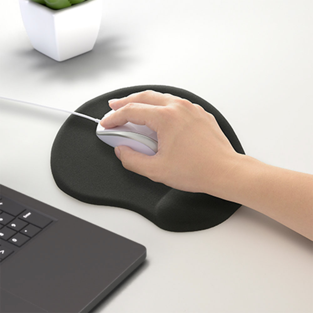 手首にかかる負担を和らげるリストレスト付きで、長時間使ってもつかれにくい