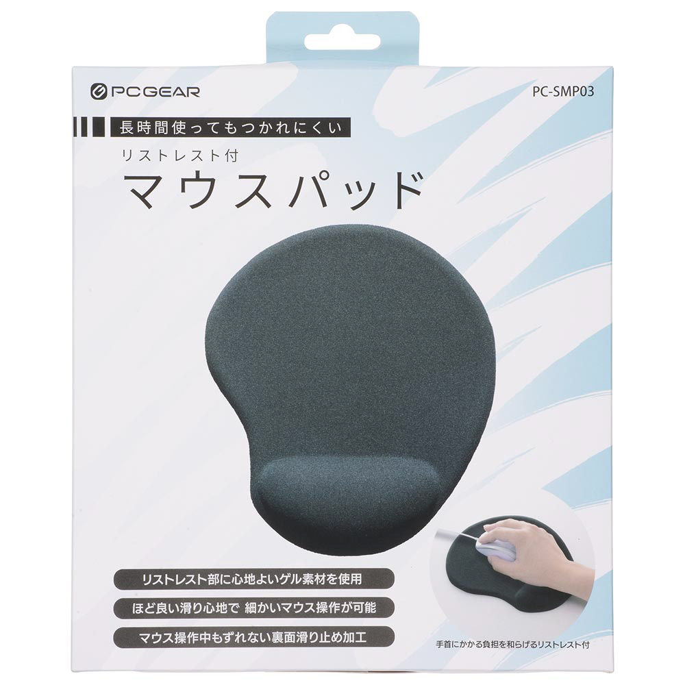 | 商品名 | PC-SMP03 マウスパッド [200x225x22mm] リストレスト付 PCGEAR ブラック |