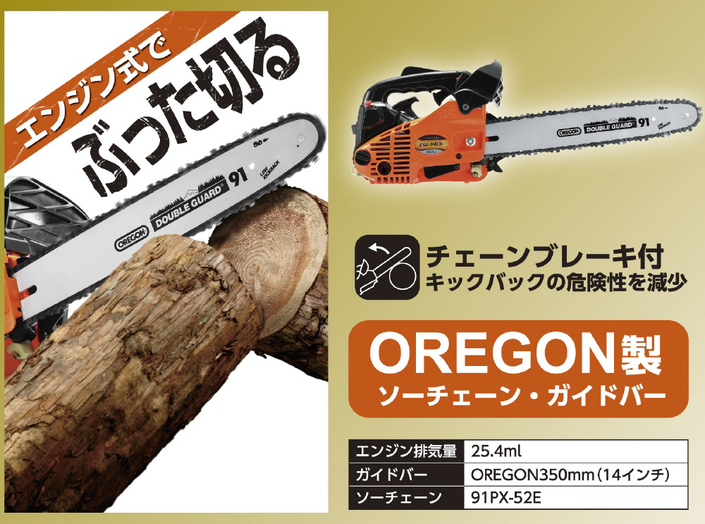 チェーンブレーキ付!キックバックの危険性を減少。