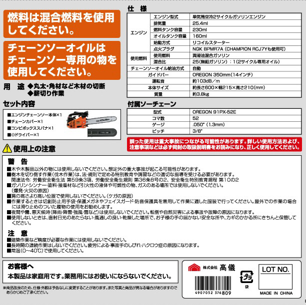 | 商品名 | エンジンチェーンソー 350mm |