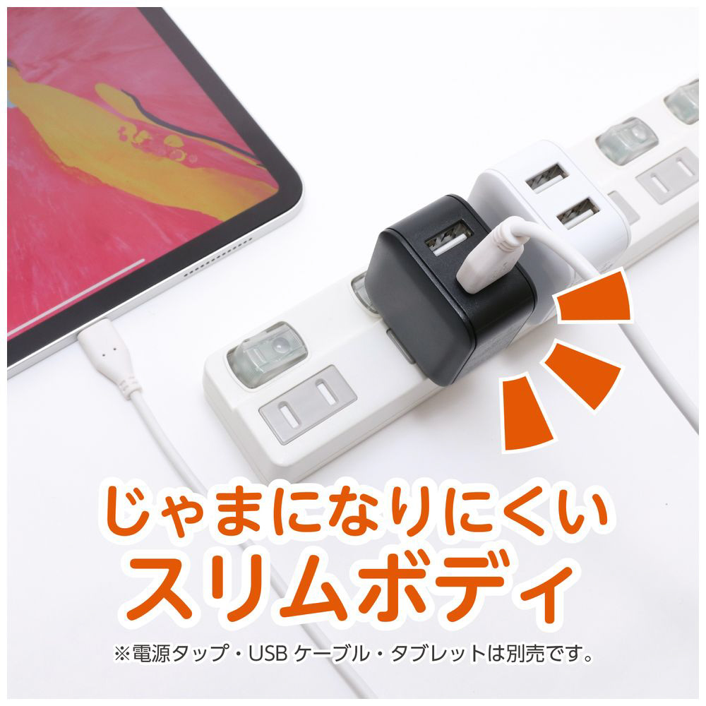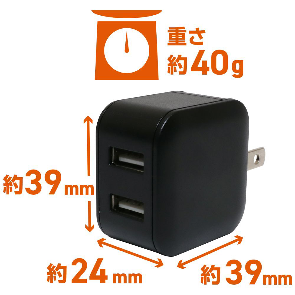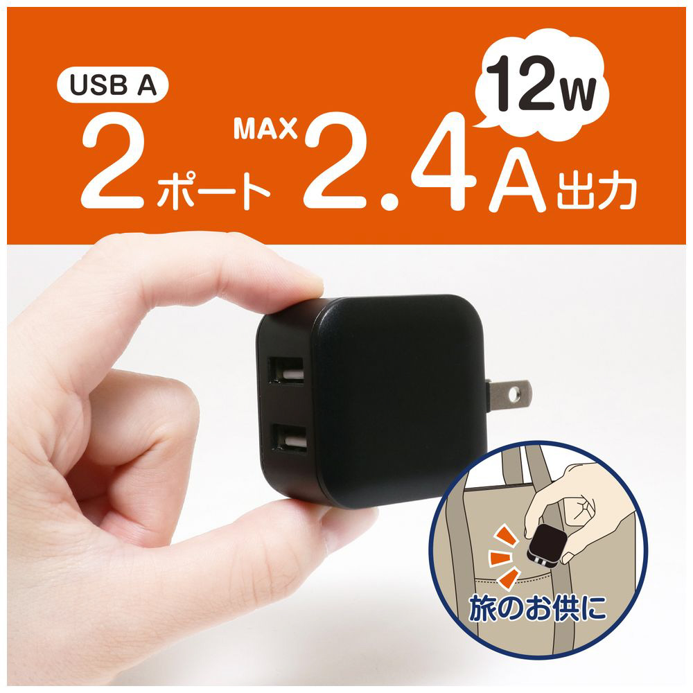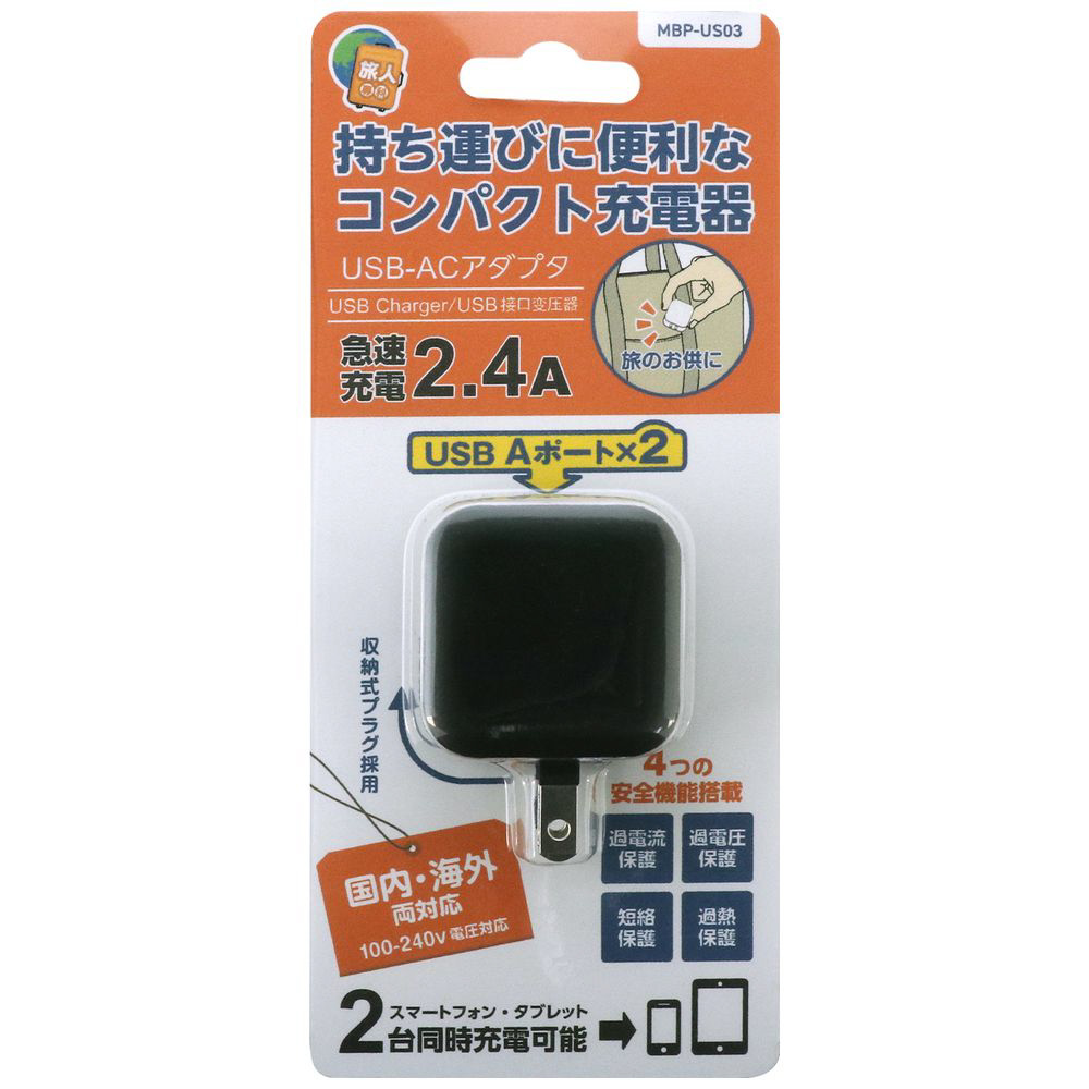 国内・海外対応 USB-ACアダプタ(2個口・USB2ポート合計2.4A)薄型・コンパクトタイプ ブラック MBP-US03BK