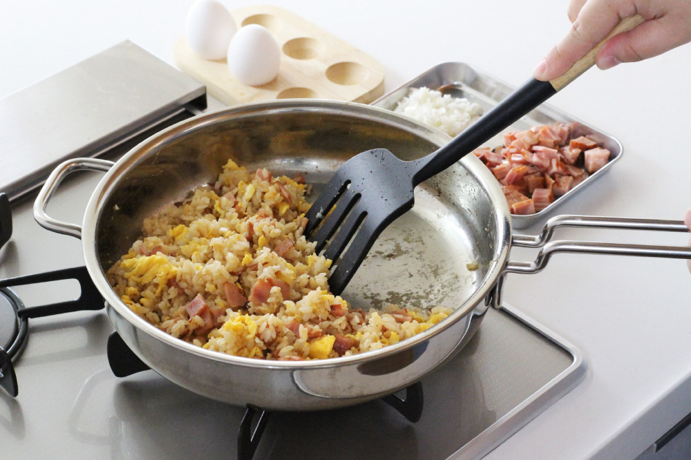7層構造で熱効率が高く、ガス代節約にも。無水調理や余熱調理も可能です。丈夫なステンレスハンドルで安心安全。
