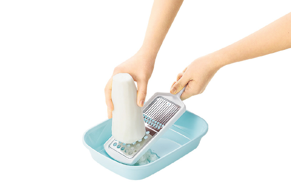 千切りと卸しがこれ1枚でOK!便利な両面仕様のフルベジ千切り・おろし器。