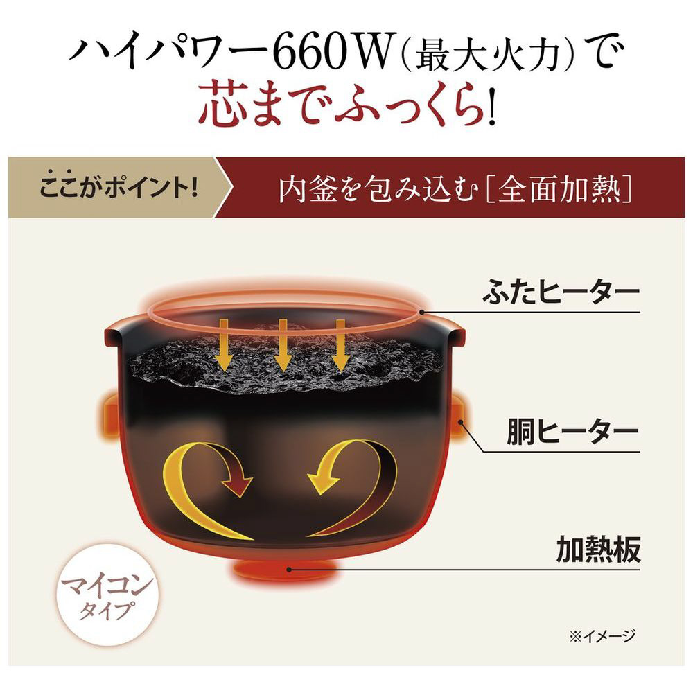ふたヒーターつきの全面加熱でふっくらおいしく炊き上げます。