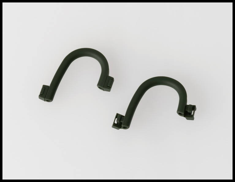 弊社のイヤーフックは、一般的なイヤーフックよりもスリムで、ワイヤーや樹脂の入ったケーブルに比べて異物感がなく、掛けていることを忘れる快適さを特長としています。
