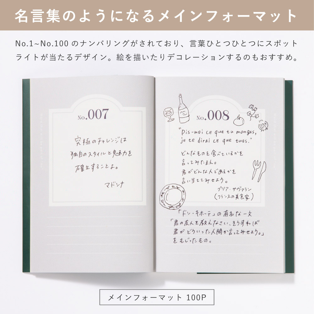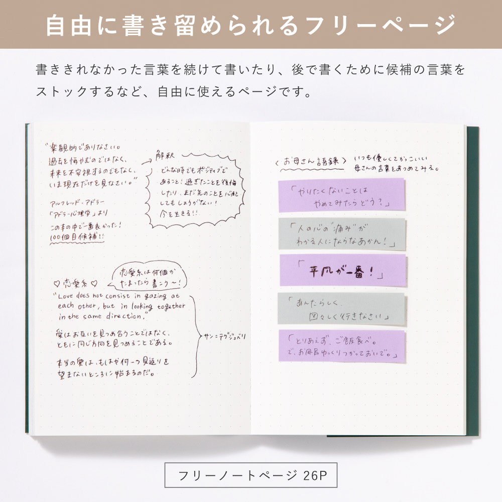 言葉を書いていくだけで、自分だけの名言集のような一冊がつくれるノートブック。