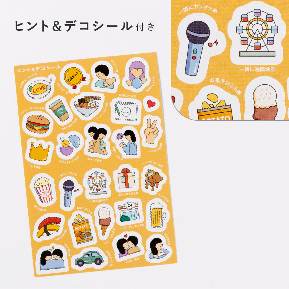 チケット名を考えるヒントになって、そのままデコシールとしても使える「ヒント&デコシール」がついています。