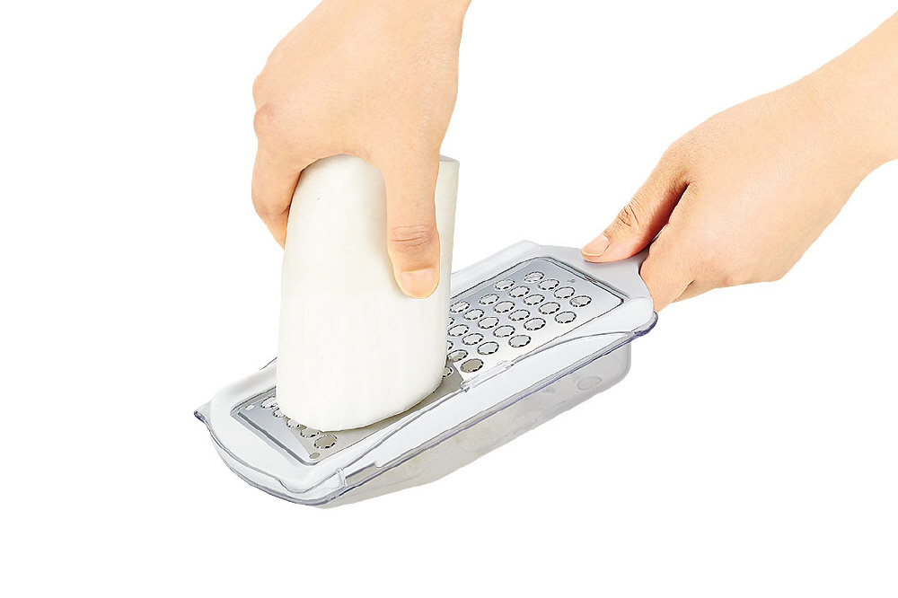 力の入れやすい角度で、大根やにんじん、山芋などをなめらかにおろせます。
