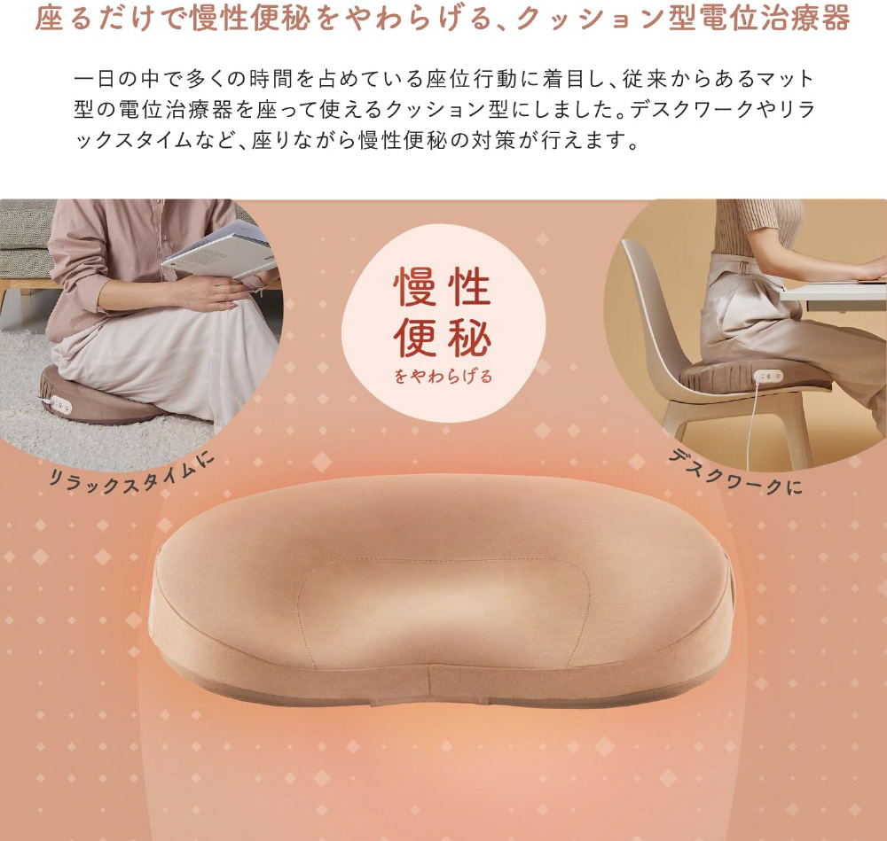 慢性便秘にお悩みの方へ。座って慢性便秘を和らげる電位治療器「暖クッション」。