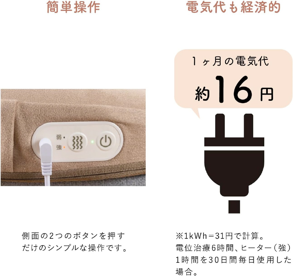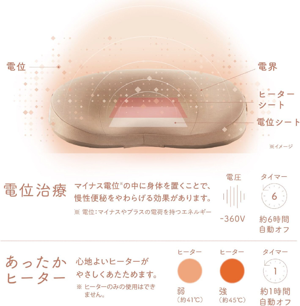 | 仕様3 | タイマー: [電位治療]約6時間自動オフ、[ヒーター]約1時間自動オフ ヒーター温度: [強]約45℃、[弱]約41℃ |