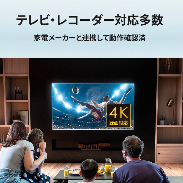 4Kテレビやレコーダーにつないで、高精細な美しい映像を、いつでもお楽しみいただけます。