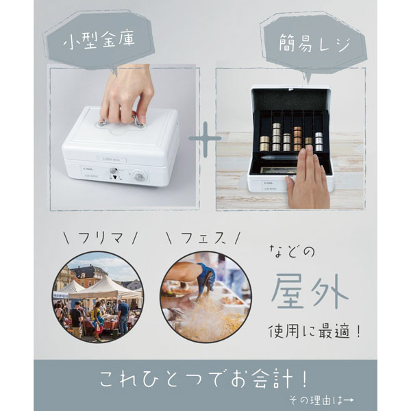 即売イベントのお会計はこれひとつで解決、持ち運びにも適したコンパクトタイプのキャッシュボックスです。