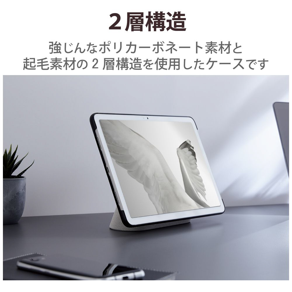 強じんなポリカーボネート素材と起毛素材の2層構造を使用した、充電スピーカーホルダーに対応のGoogle Pixel Tablet(2023年モデル)用ケースです。