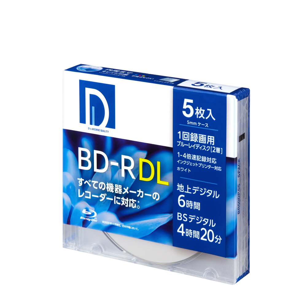 | 商品名 | 録画用BD-R DL BR50DP.5S 5枚入り [5枚 /50GB /インクジェットプリンター対応] |