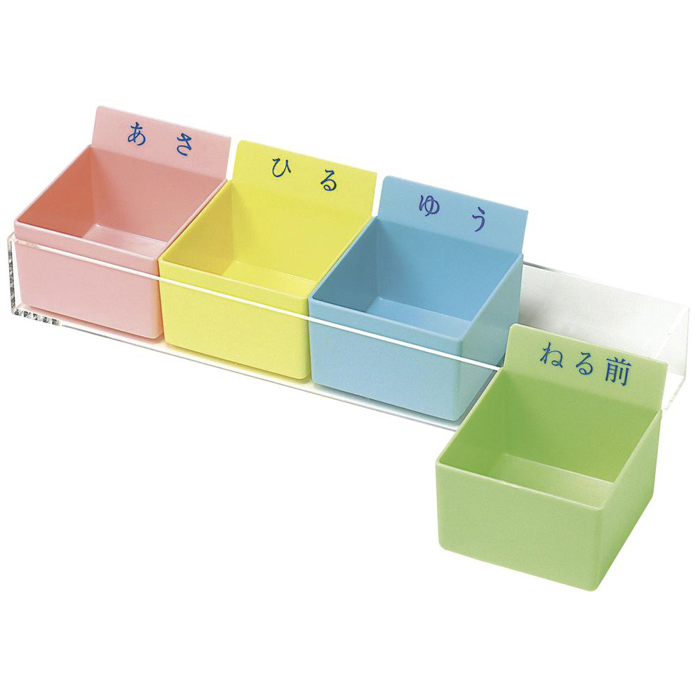 ●1日分のお薬をセットできます。●投薬トレー(PT・ST)にも使え、PT-3Kは30人用に10コ、PT-4Kは20人用に5コセットできます。●ネームシール10枚付。