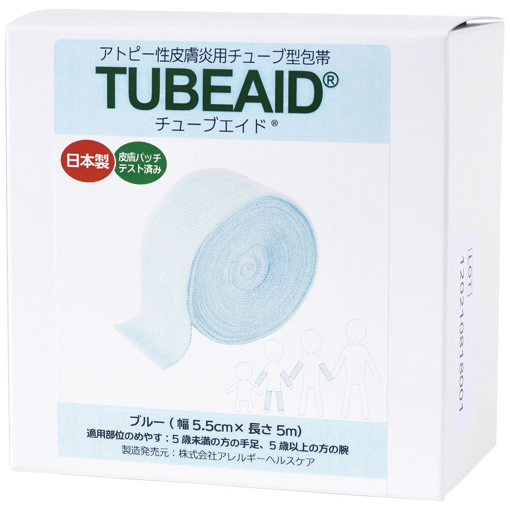 アトピー性皮膚炎等かゆみを伴う皮膚疾患において掻被行為から肌を防護することを目的とし、全身に対して適用可能なチューブ型包帯です。