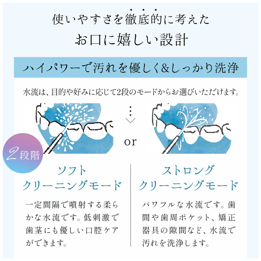 水だけのウルトラパワーにより約28〜38秒で、歯ブラシやフロスが届きにくい歯間や歯周ポケットの汚れを洗浄します(※1)。