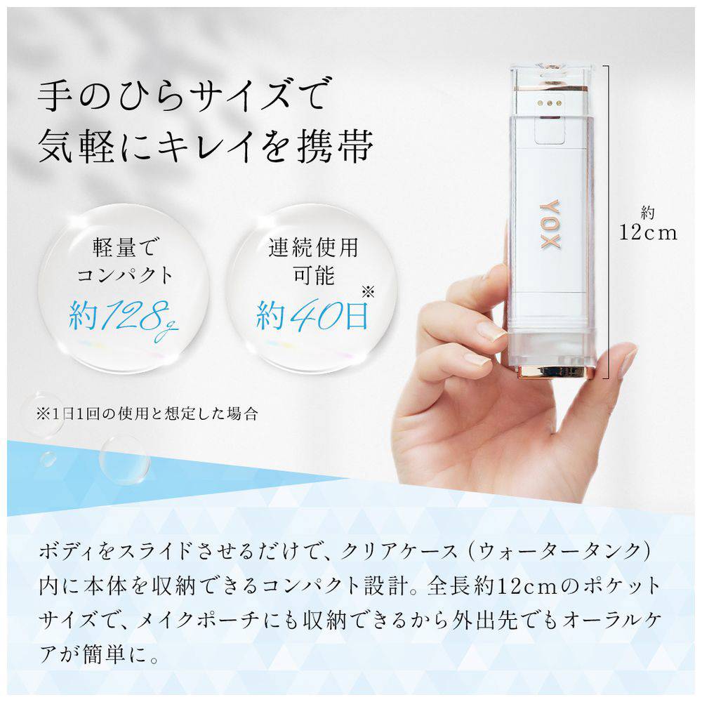 水で磨く!ヘルシーでキレイなお口のための新エステ習慣。化粧ポーチに入るサイズ、携帯できる口腔洗浄器。