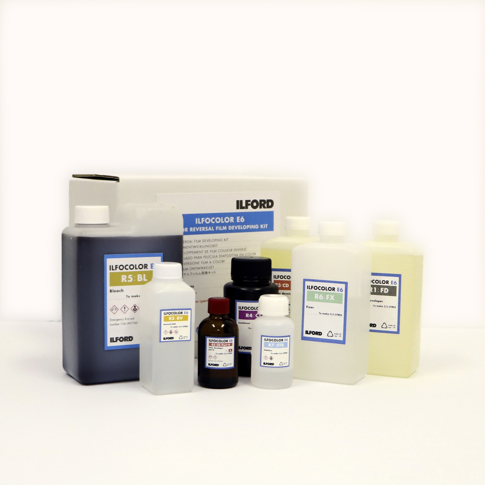 ILFOCOLOR E6キットは、ロータリー式自動現像機、小型リール現像及び深タンク現像処理用に処方された、カラーリバーサルフィルム用現像液キットです。