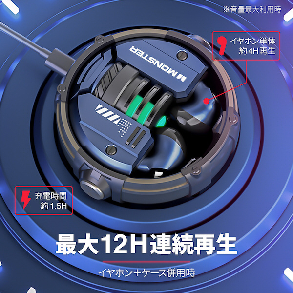 完全ワイヤレスイヤホン MONSTER ネイビー XKT10NV [ワイヤレス(左右分離) /Bluetooth対応] 【864】