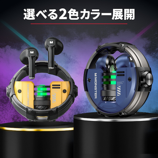 ユニークな回転機構&起動時に光るRGBライトを採用した、メカニカルなケースデザインが特徴のモデル。軽快な装着感で耳が疲れにくいインナーイヤータイプです。音声の遅延を低減するゲームモードを搭載。