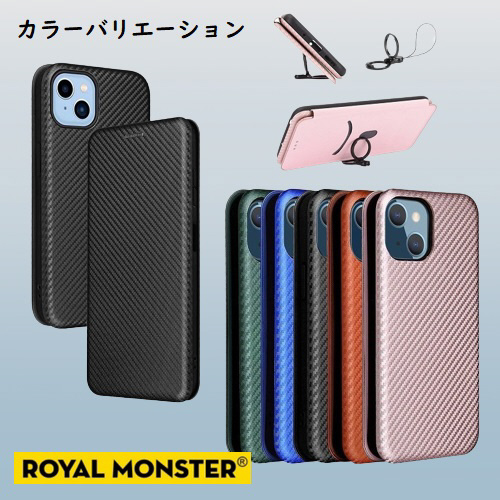 スタイリッシュでシックなカーボン素材・手帳型ケースです。
