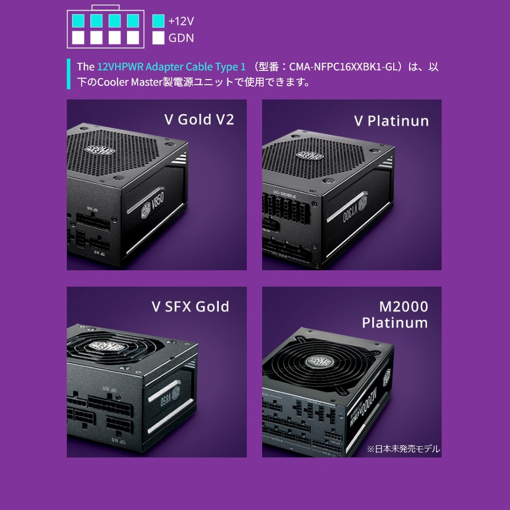 PCI Express 5.0に対応する、Cooler Master社製電源ユニット用の12VHPWRモジュラーケーブル