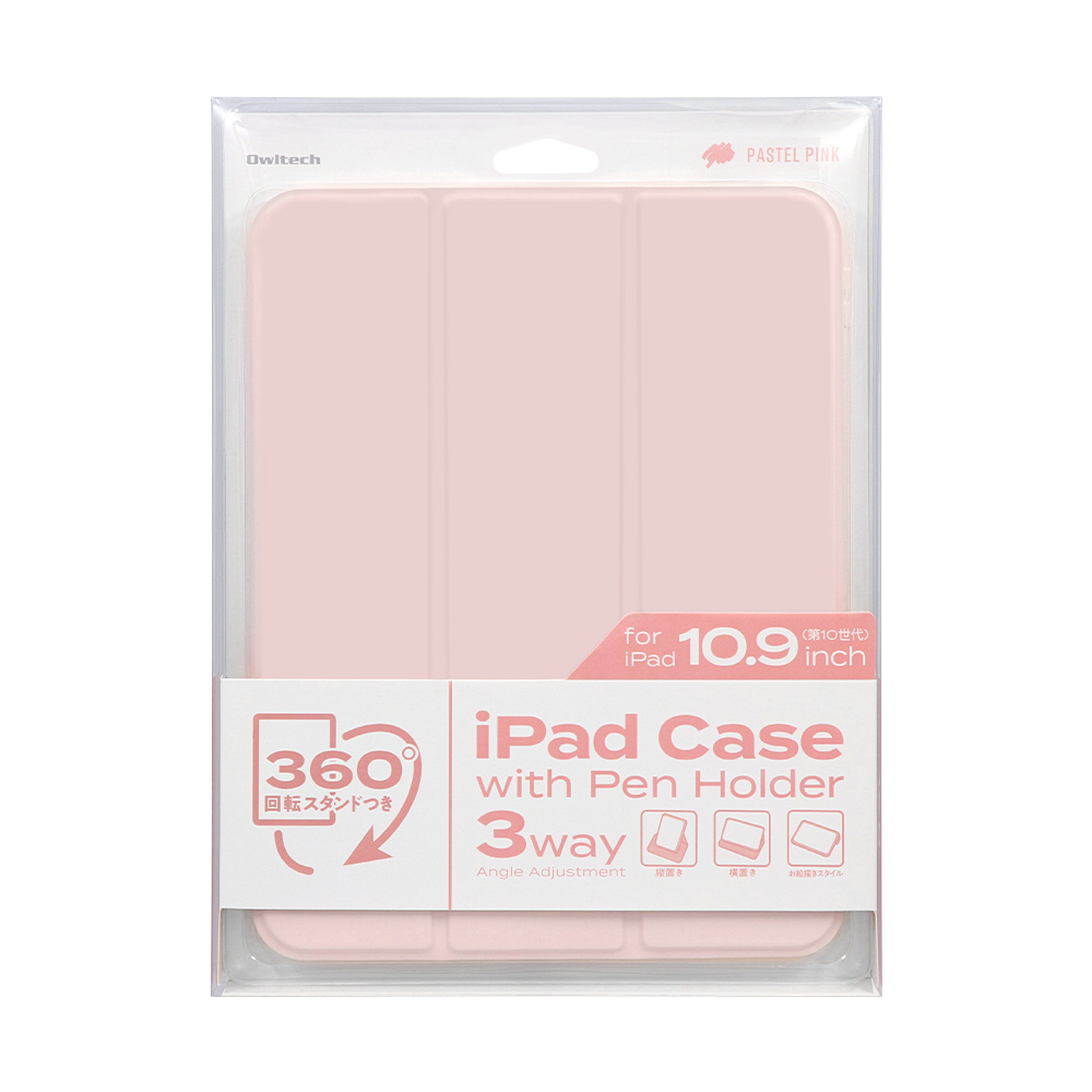 iPad 10.9インチ対応 360度回転可能 Apple Pencil収納ホルダー付き ニュアンスカラーiPadケース