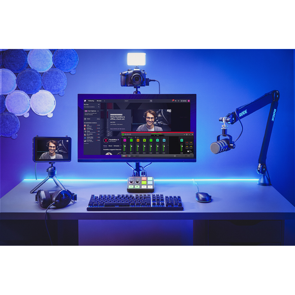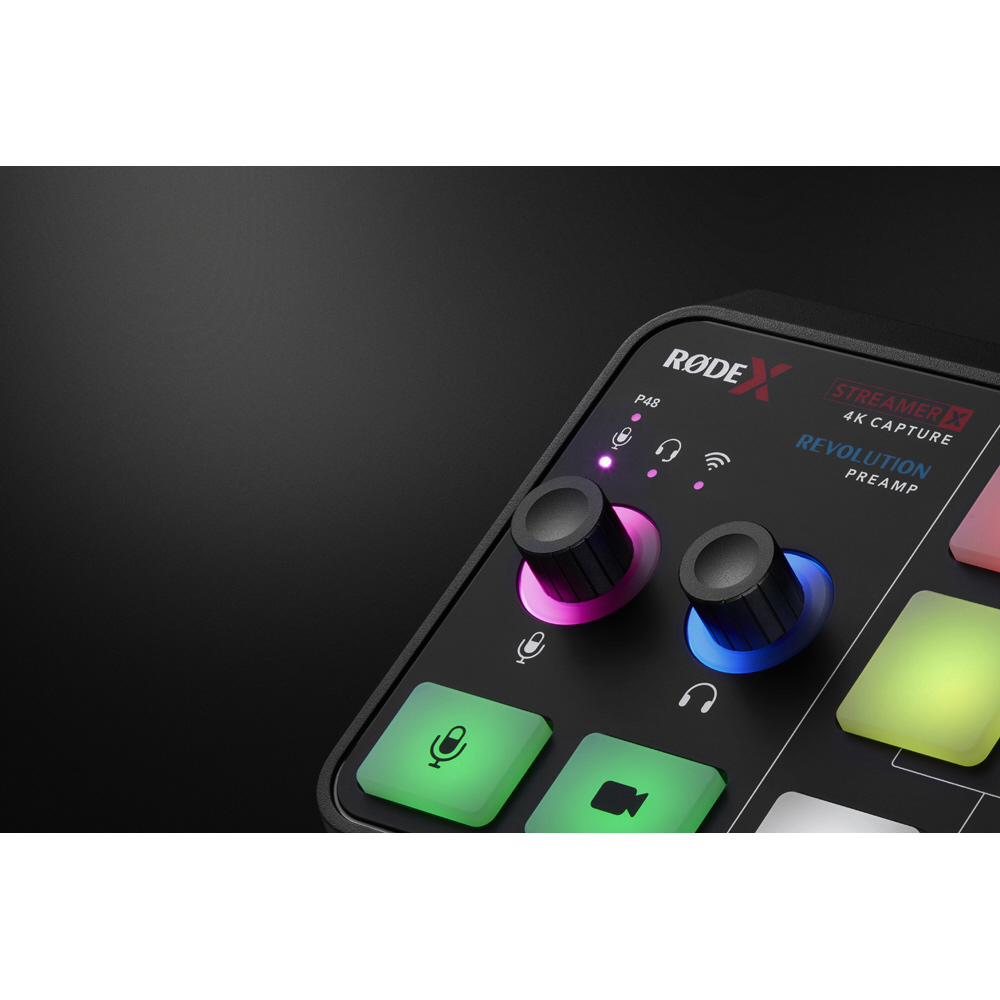 | オーディオ | 入力端子:コンボジャック × 1、ワイヤレスマイク受信(※) × 1、HDMI × 1 音声出力端子:3.5mm TRRSヘッドセット端子(イン/アウト) × 1、6.3mmヘッドホン端子 × 1 ダイナミックレンジ:113dB 等価雑音レベル:-131.5dBV(A-weighted) ゲインレンジ:0-76dB 周波数帯域:マイク入力 20Hz-20kHz、モニター出力 20Hz-20kHz 入力インピーダンス:マイク入力 4KΩ、ライン入力 1MΩ ファンタム電源供給:対応 ダイレクトモニタリング:対応 ヘッドホン出力:125mW ビット深度:24bit サンプルレート:48kHz オーディオ処理:APHEXオーディオ処理、RODE Voice FX |