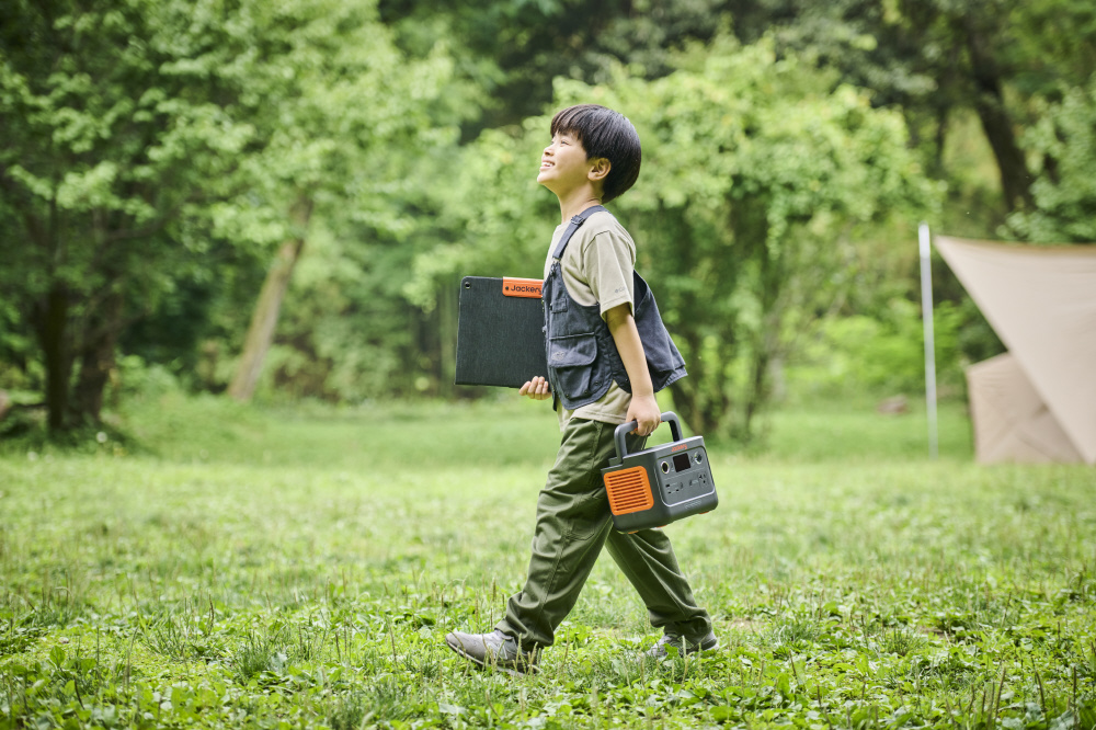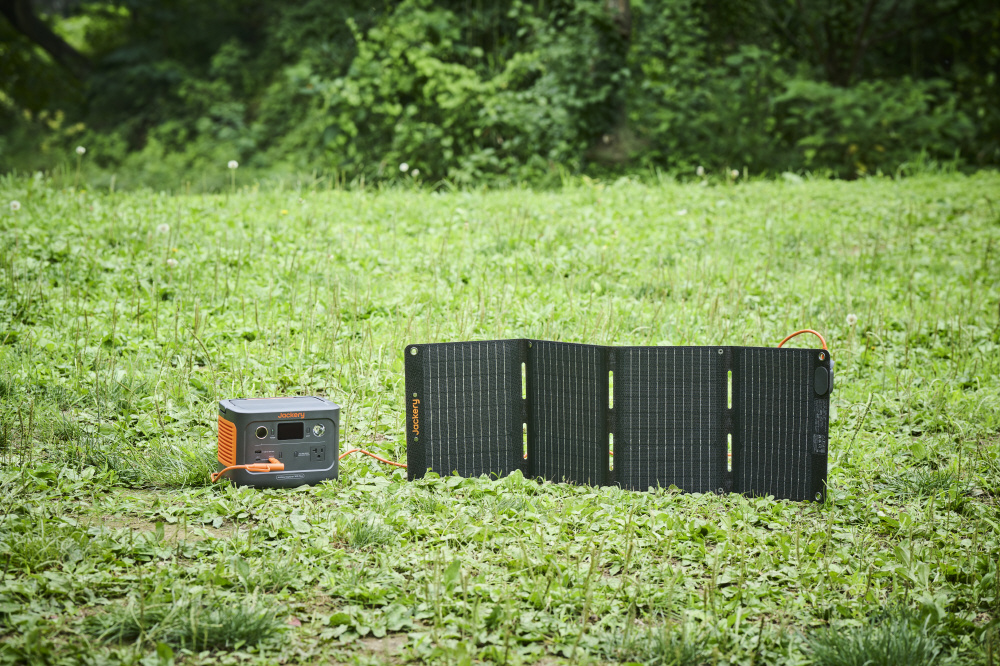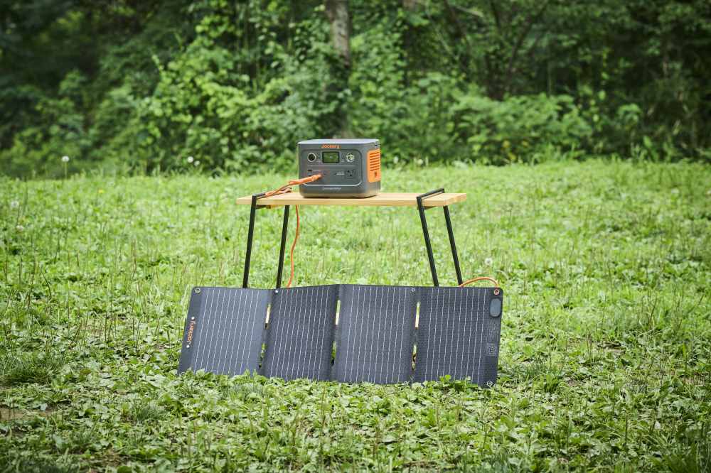 「Jackery ポータブル電源 300 Plus」とタブレットサイズに折り畳める「Jackery SolarSaga 40 Mini」を組み合わせたセット商品です。
